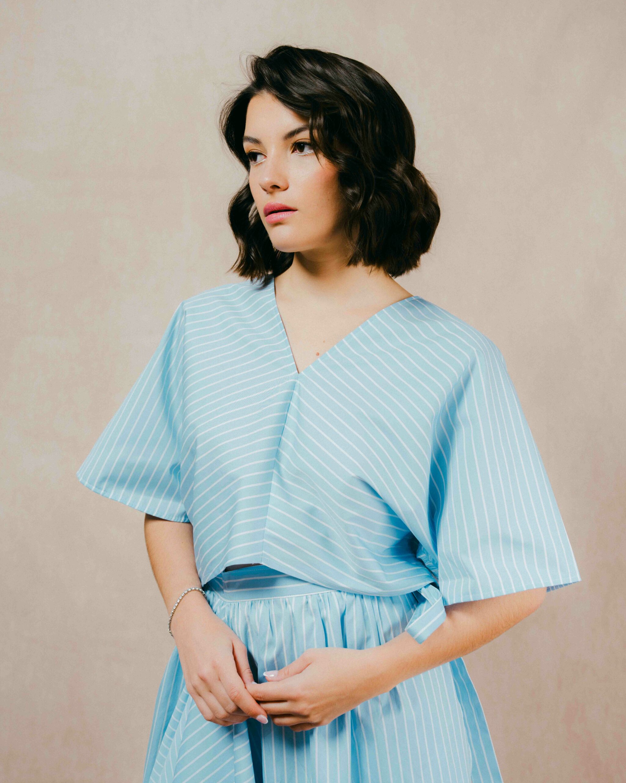 La coupe est pensée pour être portée aussi bien seule qu’associée à sa jupe coordonnée, pour une silhouette complète, moderne et affirmée.