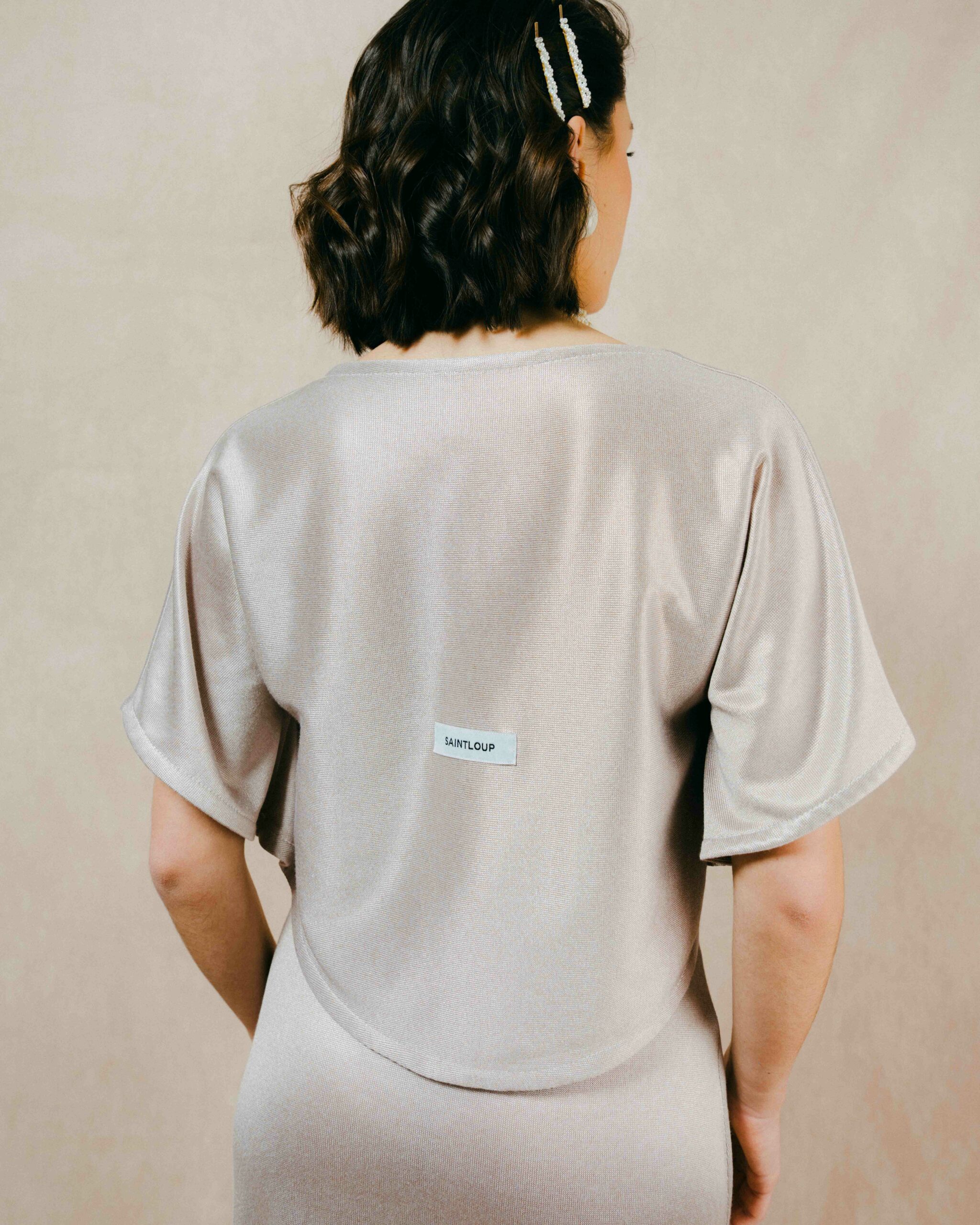 Un top à la ligne fluide, structuré par une encolure délicatement travaillée qui dessine le haut du buste avec douceur et féminité. Sa coupe légèrement ample apporte du mouvement, tandis que les manches souples accompagnent naturellement les gestes.