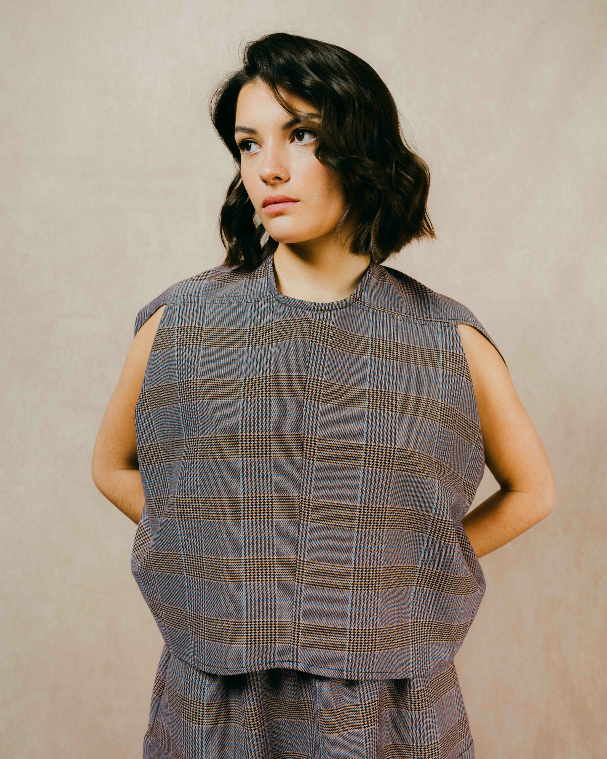 Un top à l’allure très couture, où la simplicité devient signature, pensé comme un essentiel élégant et facile à porter.
